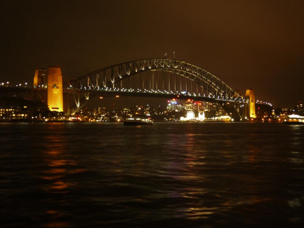Für unser letztes Nachtessen hier in Sydney haben wir heute auf unserem Rundgang eine besondere Lokalität gefunden, die Sydney Cove Oyster Bay. Weil es nachmittags noch geregnet hat, haben wir uns nicht sofort darauf festlegen wollen, zumal sie dort keine Innenplätze haben. Die Tische stehen auf dem Quai, sind mit Schirmen gedeckt. Dazu stehen einige wenige Heizstrahler da. Heute Abend hat es nicht mehr geregnet, also sind wir dahin gegangen, und siehe da, es hatte Platz. Wir haben einen Tisch direkt am Wasser erhalten und vor dieser Kulisse gegessen, das Opera House um die Ecke, die Harbour Bridge im Blick.