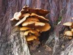 Im natürlichen Kreislauf gehören selbstverständlich auch Pilze dazu, die u.a. das Holz wieder abbauen. Die Vielfalt ist hier nicht geringer als bei uns, z.T. sind es auch die selben Pilze wie in Europa. Vielleicht hat man die auch beim Handel eingeschleppt. Sicher nicht für die Sammler, wie die Kaninchen und Hirsche für Jäger, aber unbeabsichtigt, wie vielerorts die Ratten…