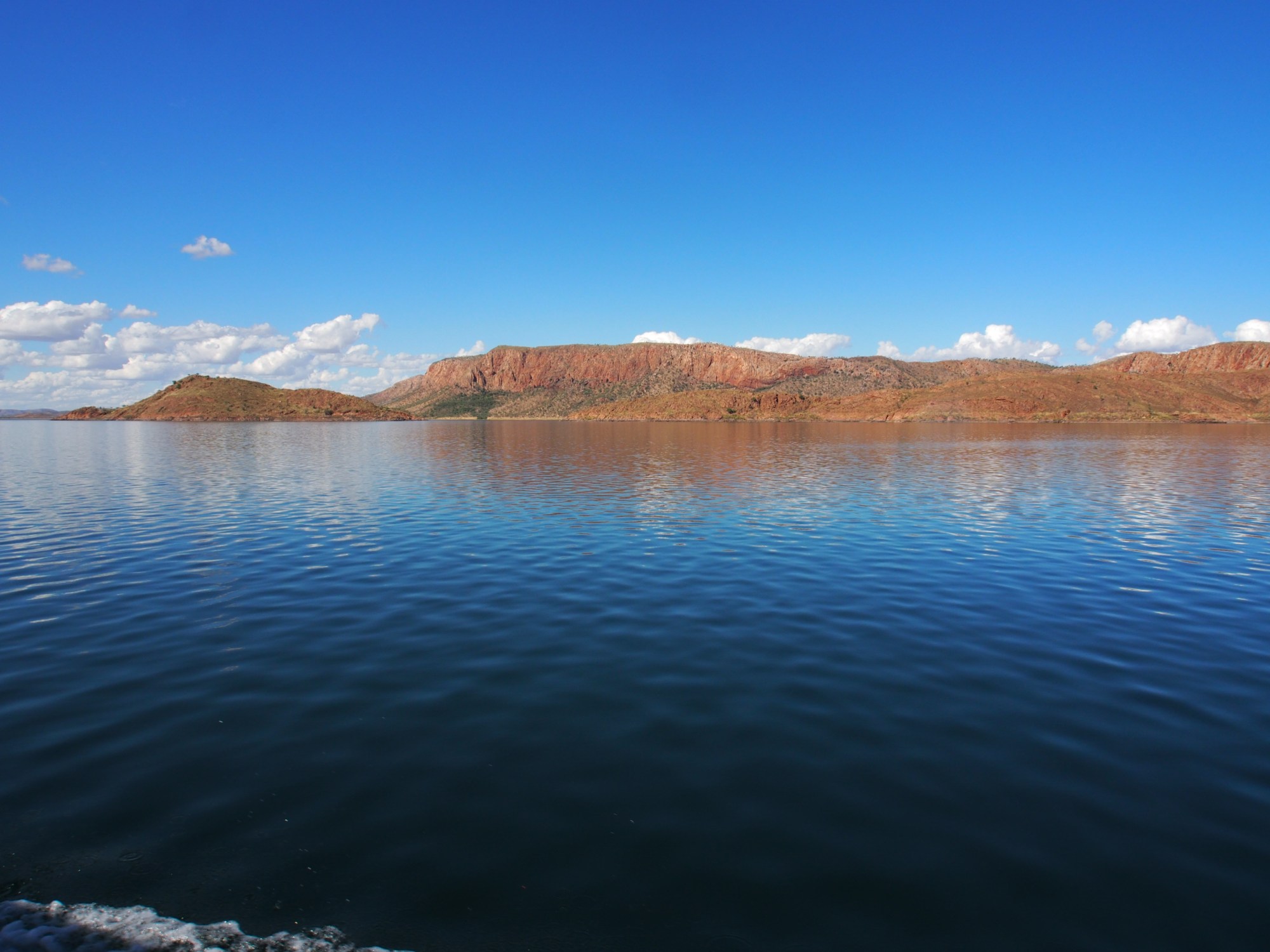 Ein weiterer Fluss, der in der Regenzeit viel Wasser führt ist der Ord-River. In der Trockenzeit verkümmerte er jedoch immer wieder auf eine Folge von mehr oder weniger permanenten Wasserlöchern. Er wurde mit einem Damm gestaut und bildet heute das grösste Süsswasser-Becken von ganz Australien. Der Lake Argyle ist ein blauer Edelstein in der roten Landschaft und versorgt diese Ecke Westaustraliens das ganze Jahr über mit Wasser.