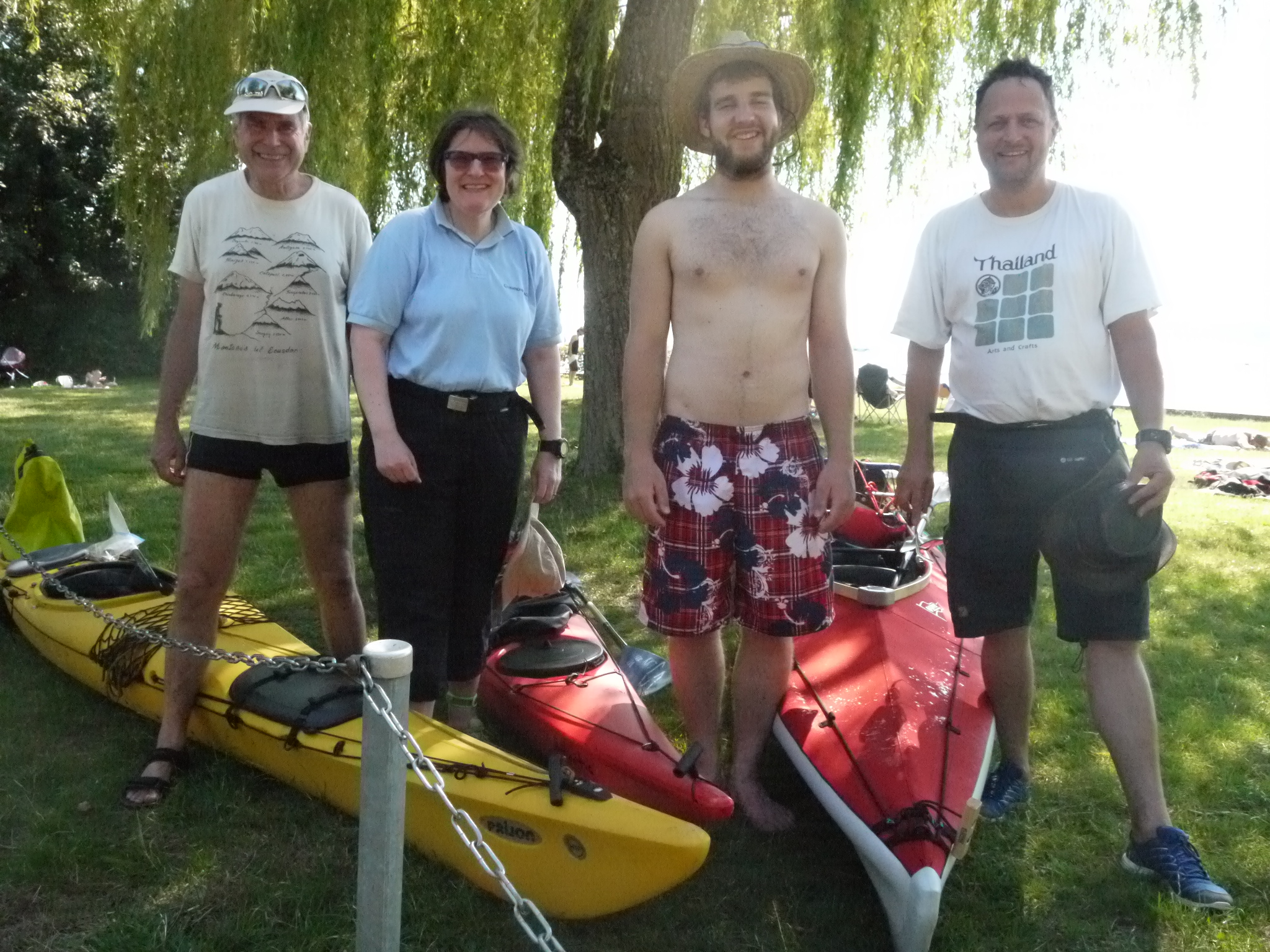 Heute sind wir von unserem „Abenteuer“ zurückgekommen. Etwas früher als geplant, aber mit Erkenntnissen. WIr sind am Montag mit dem Zug nach Chambésy bei Genf gefahren. Hier haben wir auf unsere Mitpaddler gewartet, die doch etwas länger benötigten, als sie gerechnet hatten. Die beiden haben je ein Seekayak des Kanuklubs ausgeliehen und unser Faltboot mitgebracht. Jetzt konnten wir unser Boot aufbauen, was in etwa 30min gelang. Danach packten wir alles notwendige in die Boote und assen ein Mittagessen am Strand von Chambésy, bevor wir die Boote zu Wasser liessen.