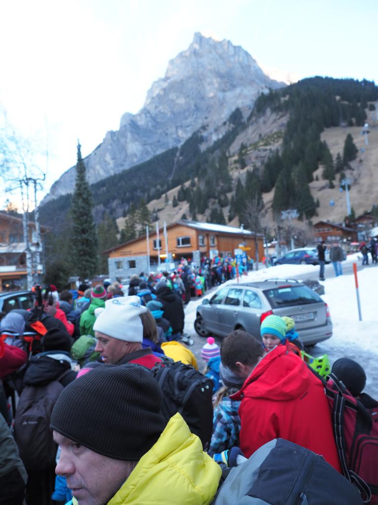 Weil der Winter bis heute sehr trocken ist und hier die Sonne den Boden nicht erreicht, konnte der See zufrieren, trotz relativ hoher Temperaturen, die hier aber doch mehrheitlich im negativen Bereich liegen. Das Restaurant beim See ist brechend voll und draussen ist es kalt. Bei der Bergstation der Godelbahn ist das Restaurant auch ziemlich voll, hier ist es aber sonnig und es ist angenehm, draussen zu sitzen. Auf der überwiegend grünen Wiese hat es ein dünnes Band des weissen Stoffs, auf dem doch einige unentwegte auf den langen Brettern herumrutschen. Auch eine Talabfahrt ist möglich, auch mit dem Schlitten, diese Routen liegen im schattigen Tal des Oeschibachs.