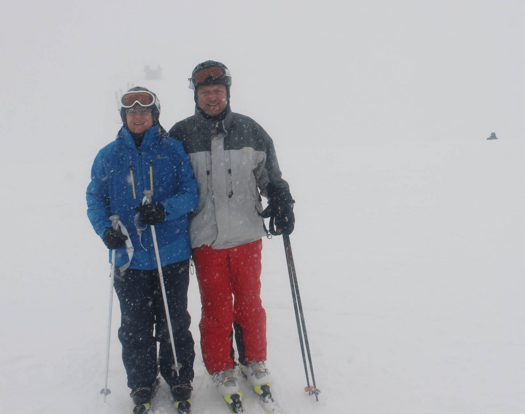 Den zweiten Tag sind wir in der Region First unterwegs gewesen. Allerdings hat es jetzt bereits morgens im Dorf geregnet. So starten wir nicht allzu früh zur Talstation der Firstbahn. Auch jetzt habe wir uns vorgenommen, alle Anlagen mindestens einmal zu fahren, was aber auf dieser Seite wesentlich weniger Zeit in Anspruch nimmt. Bei der Fahrt in der Gondel können wir zeitweise nicht bis zur nächsten Gondel sehen, so dicht ist der Nebel. Trotzdem sehen wir unter uns Gämsen im Schnee. Oben angekommen scheint die Sonne leicht in den Nebel. So fahren wir ein zweites Mal mit dem obersten Lift, um dann aber zu erkennen, dass es wieder neblig ist bis ganz oben. Auf einem Werbeplakat einer Privatbank lesen wir dann (in englisch) das Motto, das so wunderbar zu diesem Tag passt: A bad day with skiing beats a good day at the office. Wir lassen es uns auch nicht nehmen, Spass am Skifahren zu haben, auch wenn wir zeitweise keine 100m weit sehen können. (Ich gebe zu, dass der Spass nicht gleichmässig verteilt war ;-)) Zum Mittagessen fahren wir dann wieder zur First hinauf und zum Dessert fahren wir die Strecke vom Oberjoch auf 2500m Höhe bis ins Tal ab, wobei hier die Abfahrt beim Steinacher auf 1200m Höhe endet. Ab hier müssen wir mit dem Bus weiter ins Dorf fahren. Früher als vorgesehen sind wir wieder im Dorf und fahren dann nach Hause.