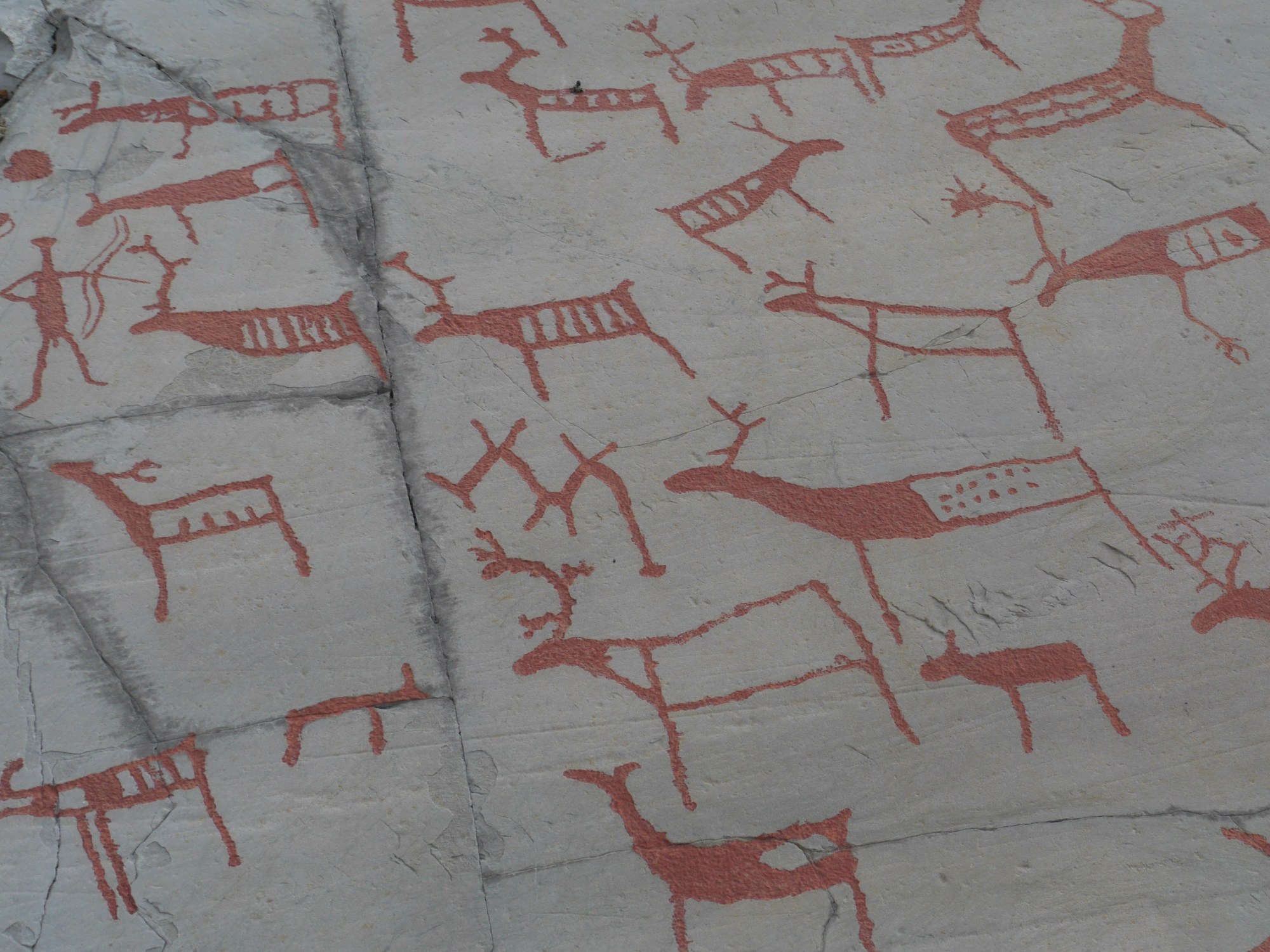 In Hjemmeluft kurz vor Alta gibt es noch alte Zeugnisse der Kultur zu sehen, ein UNESCO-Weltkulturerbe. Es sind die 2000-7000 Jahre alten Felszeichnungen. Nach der Eiszeit lag das Land noch tiefer, und die Menschen in der Zeit haben am Strand in die blanken Felsen ihre Geschichten gezeichnet. Nicht mit Farbe, die haben den Stein behauen und kleine Punkte hineingeschlagen. Einen neben dem Andern, so konnten präzise „Gravuren“ gemacht werden. Die Motive sind die Tierwelt, Jagdszenen und ähnliches. Während langer Zeit wurden die Felszeichungen gemacht und weil sich das Land aus dem Wasser hob (vermutlich weil es nicht mehr vom schweren Eispanzer hinabgedrückt wurde) kamen die alten Zeichnungen weiter vom Strand weg und neue Felsen wurden genutzt. So gibt es einen ganzen Strauss von Bildtafeln aus unterschiedlichen Zeiten von oben nach unten angeordnet.