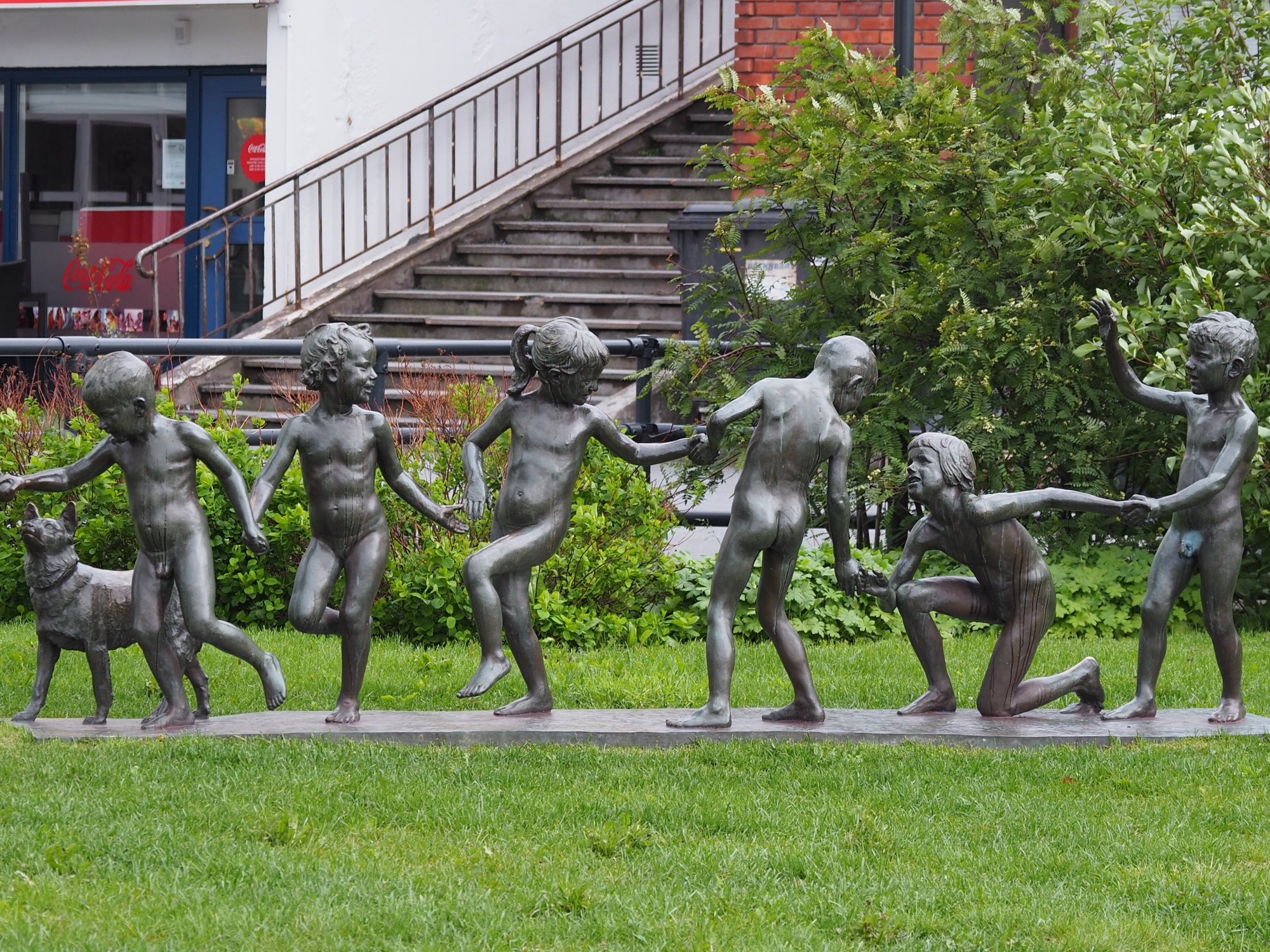 Vom Hotel aus können wir dem Treiben zusehen und verfolgen, wie endlos lange Züge mit riesigen Schüttgut-Muldenwaggons ankommen, in einer langen Halle verschwinden, wo sie entladen werden. Das geht ohne grossen Lärm und Staub von statten, ich nehme an, dass die Halle auch darum den Vorgang verbirgt. Danach werden sie bereitgestellt, um wieder nach Kiruna gefahren zu werden. Am Kai liegt ein Schiff und wird vermutlich beladen; andere warten auf Reede.