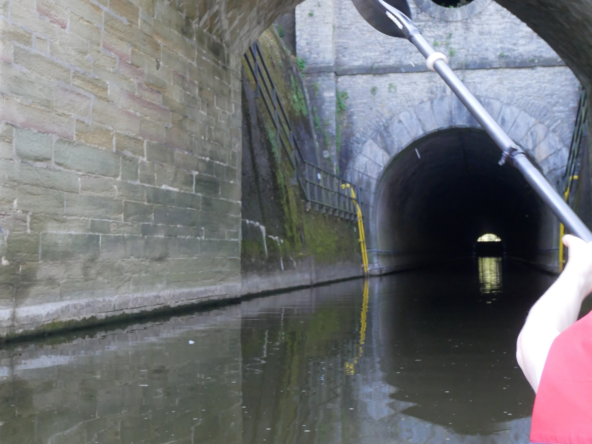 Wir fahren mit dem Auto nach Weilburg, dort können wir bei der Ahäuser Brücke das Boot ausladen und zusammenbauen. Das Auto parkieren wir dann beim Bahnhof. Eine ganze Reihe Leute, die bei einem Anbieter ein Kanu mieten, beginnen ihre Tour ebenfalls dort. Der Fluss ist schön und ruhig zu paddeln. Der 195m lange Schifffahrts-Tunnel ist gar nicht so schlimm wie ich mir das vorgestellt habe. Danach kommt gleich eine Doppel-Schleuse. Das ist auch sehr spannend zu erleben, die Schleusen müssen selber bedient werden.
