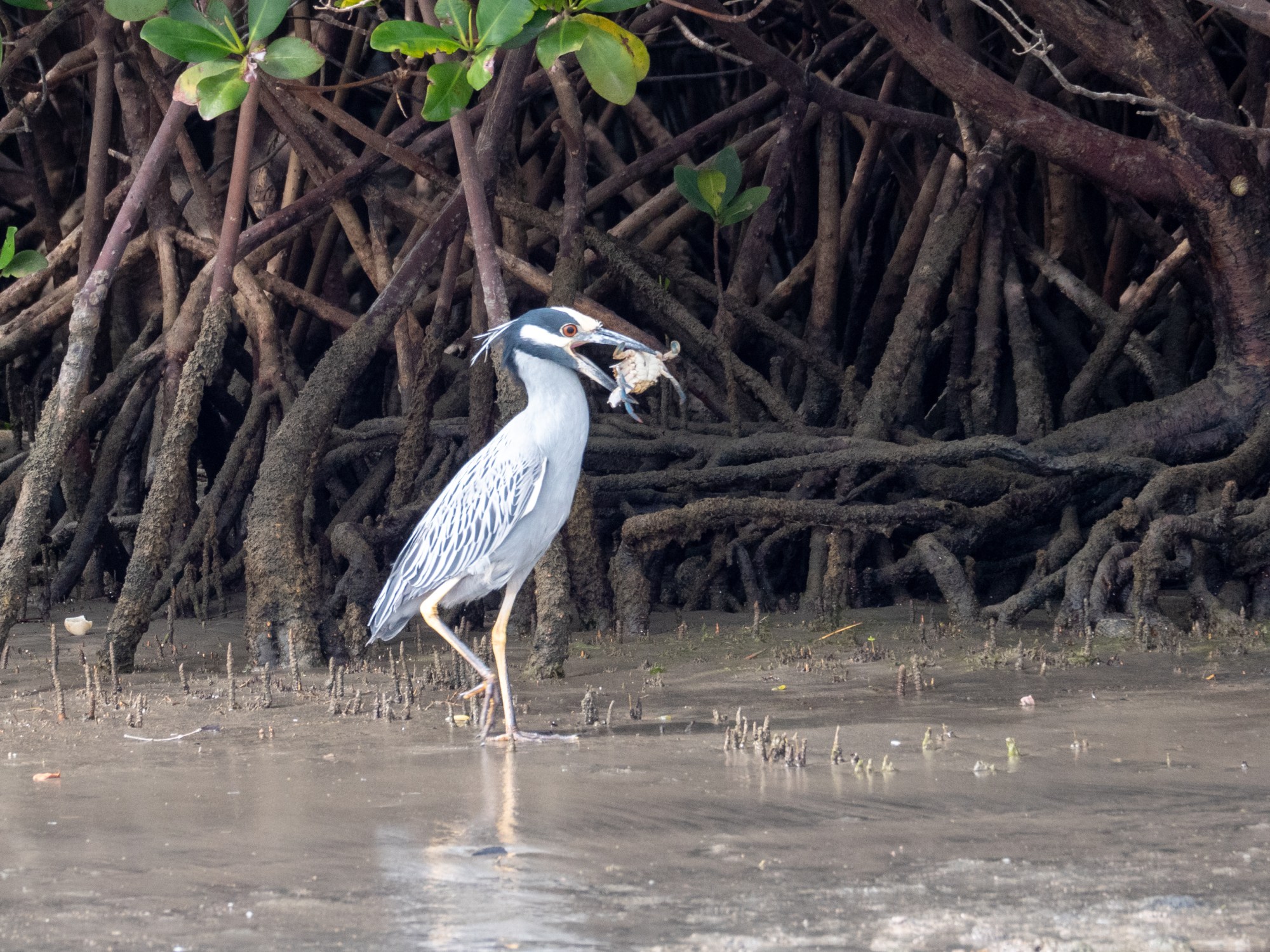 Diesem Vogel konnten wir zusehen, wie er die Krabbe schnappte, wir konnten aber nicht sehen, wie er sie öffnete um sie zu verspeisen. Sicher wird es ihm gelungen sein, dann guten Appetit.
