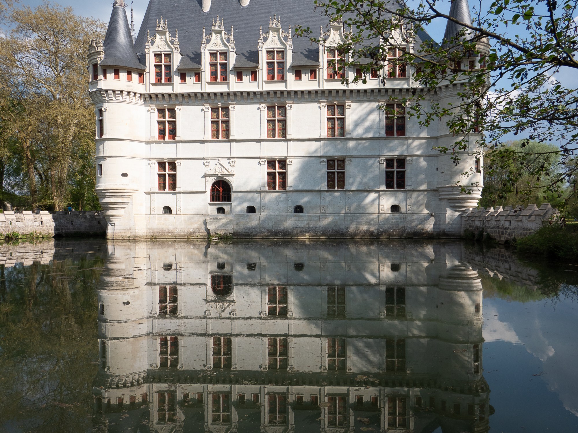 Wenn man schon in der weiteren Umgebung der Loire Schlösser untergebracht ist, sollte man wenigstens eines der Schlösser besuchen. Die Wahl ist schnell getan; wir besuchen Azay-le-Rideau. Nach ca. 160 km Fahrt erreichen wir Azay, ein kleines Städtchen. Wir können direkt auf dem Marktplatz parkieren wo auch Nikola einen Futter-Trog (Elektro-Tankstelle) findet. Zum Schloss sind es nur wenige hunderte Meter.