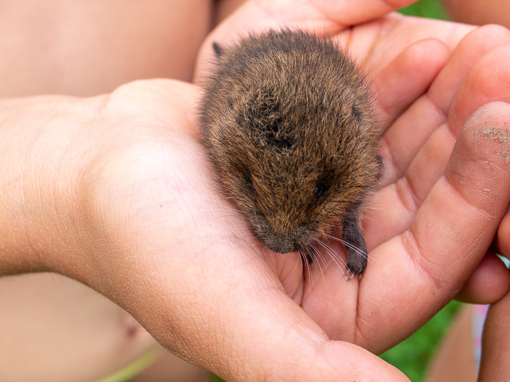 Bei der Ankunft am Platz hat die 2. Enkelin 2 kleine Mäuschen im Gras entdeckt. 2 kaum ausgewachsene Feldmäuse lagen da, dicht aneinander gekuschelt. Sie waren unverletzt und brauchten einige Zeit, bis sie lebhafter wurden. Natürlich konnten auch die anderen Mäuschen nicht lassen, diese zu streicheln und in die Hand zu nehmen. Nur mit Mühe konnten sie überzeugt werden, diese nicht nach Hause nehmen zu wollen. Wir haben sie in der Nähe bei einem Baum hingelegt, nicht dass jemand noch aus Versehen auf eine tritt.