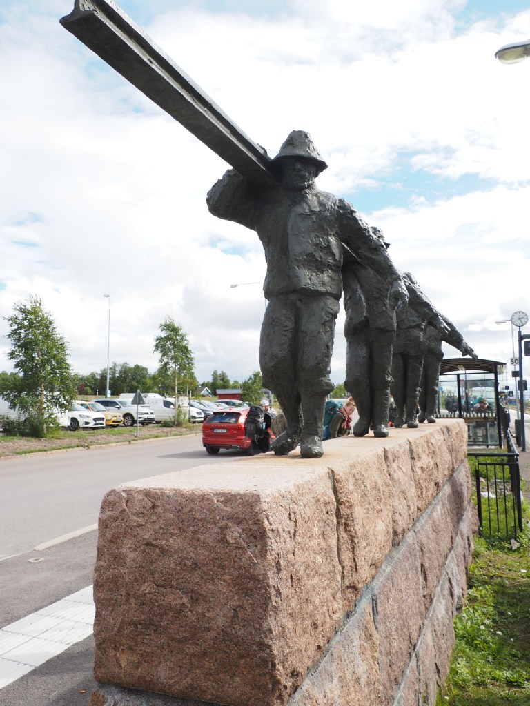 Kiruna ist die grosse Bergbaustadt. Schon bald sind die Abraumhalden sichtbar. Vor 4 Jahren war man ja dabei, die Stadt einige Kilometer zu verlegen, weil der Bergbau den Untergrund gefährdete. Wie weit man heute dabei ist? Wir verweilen ja nicht sondern fahren mit dem Zug weiter, nachdem die Lokomotive am anderen Ende angekoppelt worden ist, denn jetzt fährt der Zug anders herum. Sind wir bislang in Fahrtrichtung gesessen, sitzen wir jetzt eben mit dem Rücken dazu. Dabei fällt mir die philosophische Betrachtung von Mani Matter dazu ein: