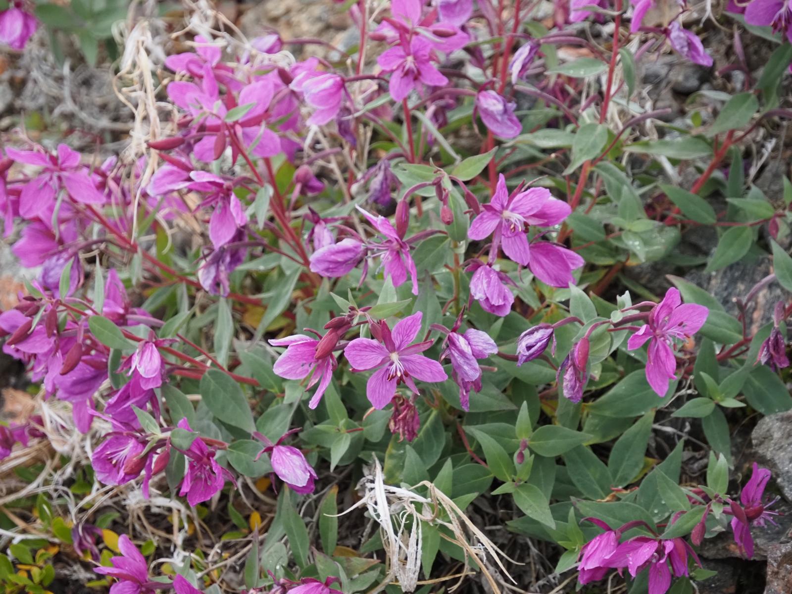 Wir finden hier eine überraschend reiche Vegetation vor, es gibt Strauchweiden, eine Art Heidekraut, Gräser und erstaunlich viele blühende Pflanzen: Steinbreche, den arktischen Mohn, das grönländische Weideröschen, Hornkraut, stengelloses Leimkraut, Knöterich, Arnika usw.