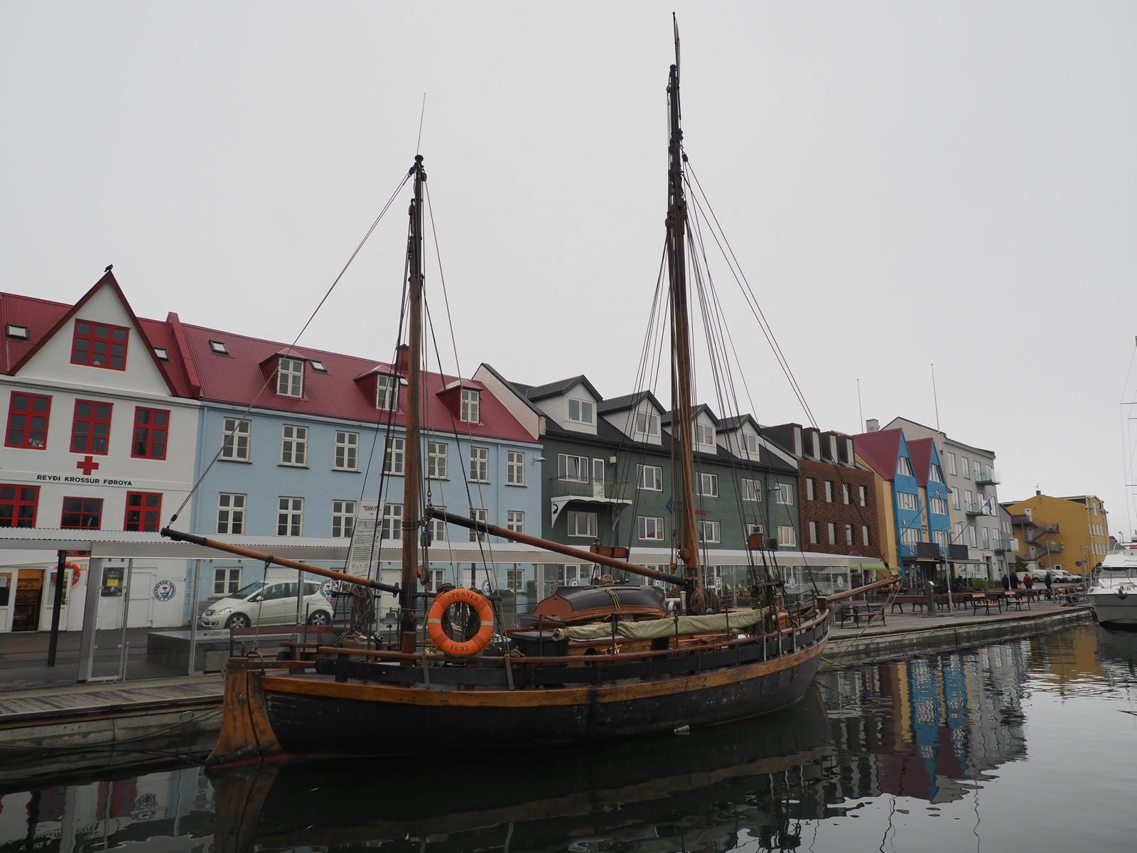 Während wir bei unserem Spaziergang durch Thorshavn am Hafen entlang gehen und uns auf das eine oder andere aufmerksam machen, hören wir eine Stimme sagen: „da ghört men au schwyzerdütsch“. Mein Augenmerk war gerade auf ein schönes Holz-Segelschiff mit 2 Masten gerichtet. Wir kommen mit dem Mann ins Gespräch, er ist mit eben jenem Schiff auf einer längeren Reise unterwegs, die ihn hierher geführt hat. Er wird über den Winter hier bleiben und will nächstes Jahr über Island und Grönland (auf der Vikinger-Route) in die USA segeln. Dort lebt(e) er seit fast 40 Jahren, bis er sich (vorzeitig) zur Ruhe setzte und nun vorwiegend auf dem Schiff wohnt.