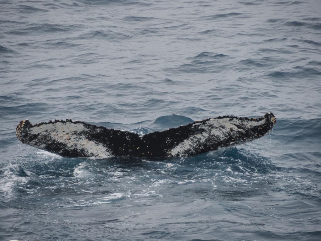 Das Schnaufen der Wale beim Auftauchen (sie müssen ja schliesslich Luft holen) ist laut zu hören, atemberaubend. Solche Geräusche in dunklem Wald würden wohl jedem grosse Angst erzeugen. Immer wieder sind die Kreise zu erkennen, in denen die dunklen Riesen schwimmen; dann plötzlich in die Tiefe abtauchen. In einem solchen Kreis habe ich in kurzer Zeit 30 Wale abtauchen sehen und trotzdem waren noch mehr als 10 an der Oberfläche am Kreiseln…