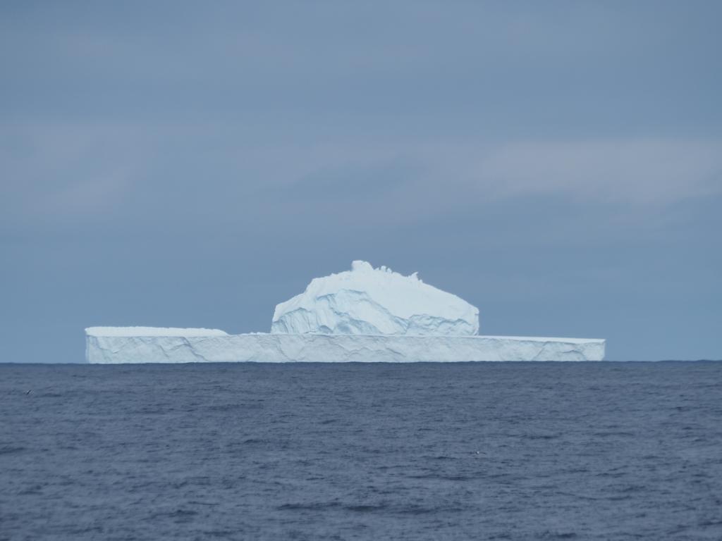Auch zwischen Falkland und Südgeorgien fällt die erste Sichtung von Eisbergen auf dieser Reise. In einer langgestreckten Prozession ziehen sie südlich unseres Kurses nach Westen, während wir nach Osten unterwegs sind.