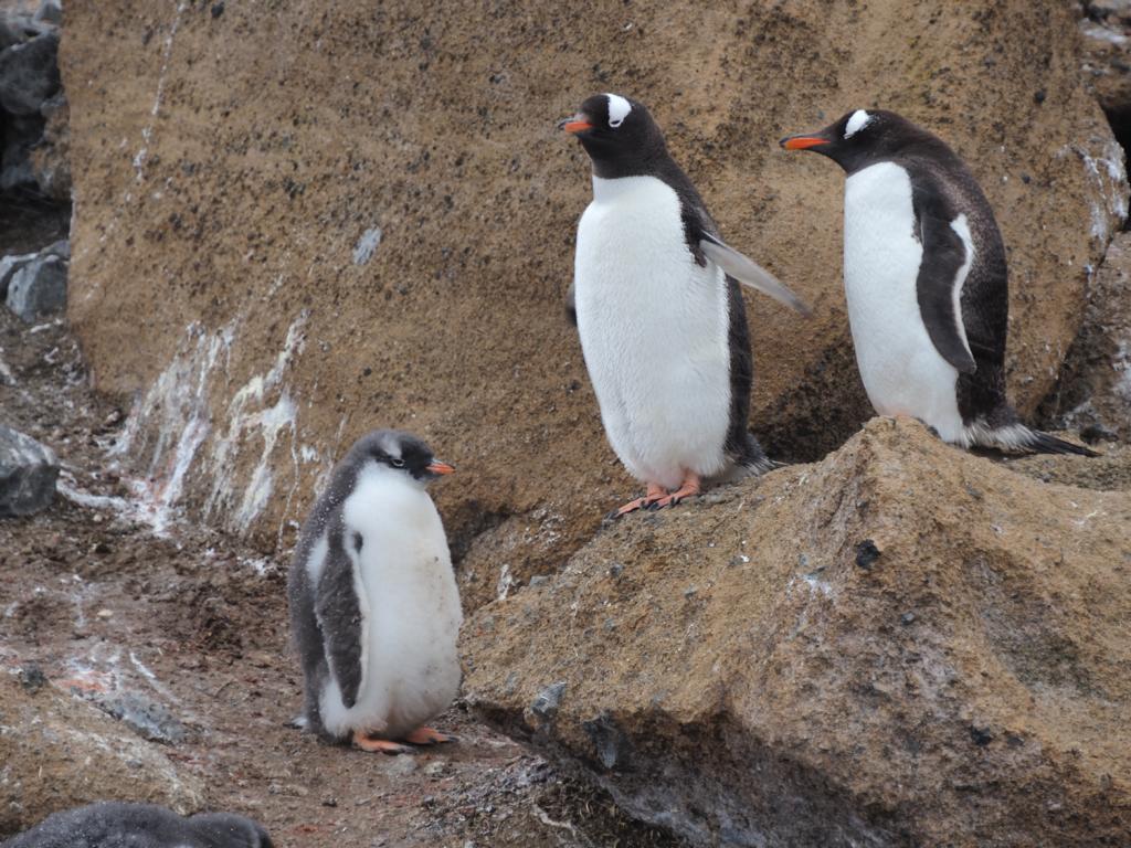 Natürlich gibt es hier Pinguine, Esels- und Adelie-Pinguine. Daneben sind die üblichen Begleiter wie Möven, Skua und Scheidenschnäbel. Einzelne Seebären liegen noch am Strand und wenn man nicht aufpasst, kann man über so ein Tier stolpern, so gut sind sie im Gestein getarnt.