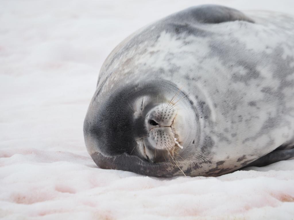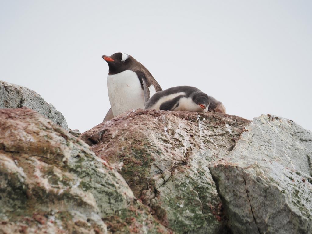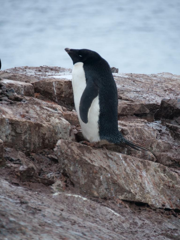 Der südlichste Punkt dieser Reise liegt bei 65°10’35’’ Süd, also immer noch mehr als 100km nördlich vom Polarkreis. Die Petermann-Insel wurde von deutschen Seefahrern benannt und die Pinguinkolonie wird seit über hundert Jahren erforscht. So gibt es hier Zahlen über die Artenverteilung über lange Zeit hinweg. Hier brüten die Esels- und die Adeliepinguine in einer gemischten Kolonie, wobei die Eselspinguine zunehmen, die Adelie jedoch abnehmen. Das hat vermutlich mit den klimabedingten Veränderungen im Nahrungsangebot zu tun, Die Esel fressen kleine Fische und Tintenfische, die Adelie vorwiegend Krill. Es ist auch gleichzeitig die letzte Anlandung in der Antarktis für diese Reise. Jetzt gibt es noch die Drake-Passage zu queren auf dem Weg zurück in die Zivilisation.