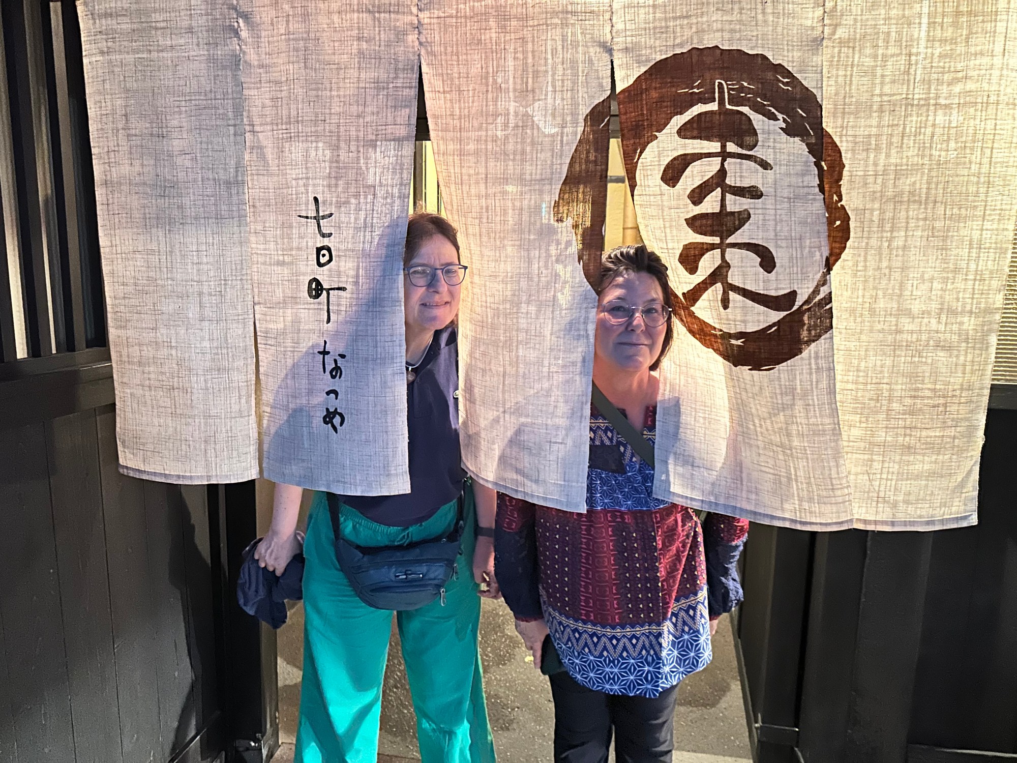 Es entpuppt sich als wahrer Glückfall. Zwar spricht die Bedienung ausschliesslich japanisch und auch die Karte ist ausschliesslich in Japanisch geschrieben. Wir sitzen in einem kleinen Raum für uns (alle Gästegruppen sitz jeweils in einem separaten Raum), vor dem wir die Schuhe ausziehen müssen. Aber wir brauchen nicht am Boden sitzen, unter dem Tisch hat es eine Vertiefung, in der unsere Beine Platz haben, wir sitzen auf einer Bank. Mit Händen und Füssen, den Brocken Japanisch von Miso und Nori und den Bildern der Karte können wir eine Bestellung machen. Es gibt richtig schöne Salate mit Onsen-Ei (oder ohne), Nigiri-Sushi und Maki-Sushi, letztere so gross, dass sie nur sehr schwer auf einmal zu schlucken waren und mit 3 Sorten Fisch gefüllt. Leider war das Gari grad alle, aber die Sushi waren so köstlich, dass sie auch ohne Ginger zu essen waren.