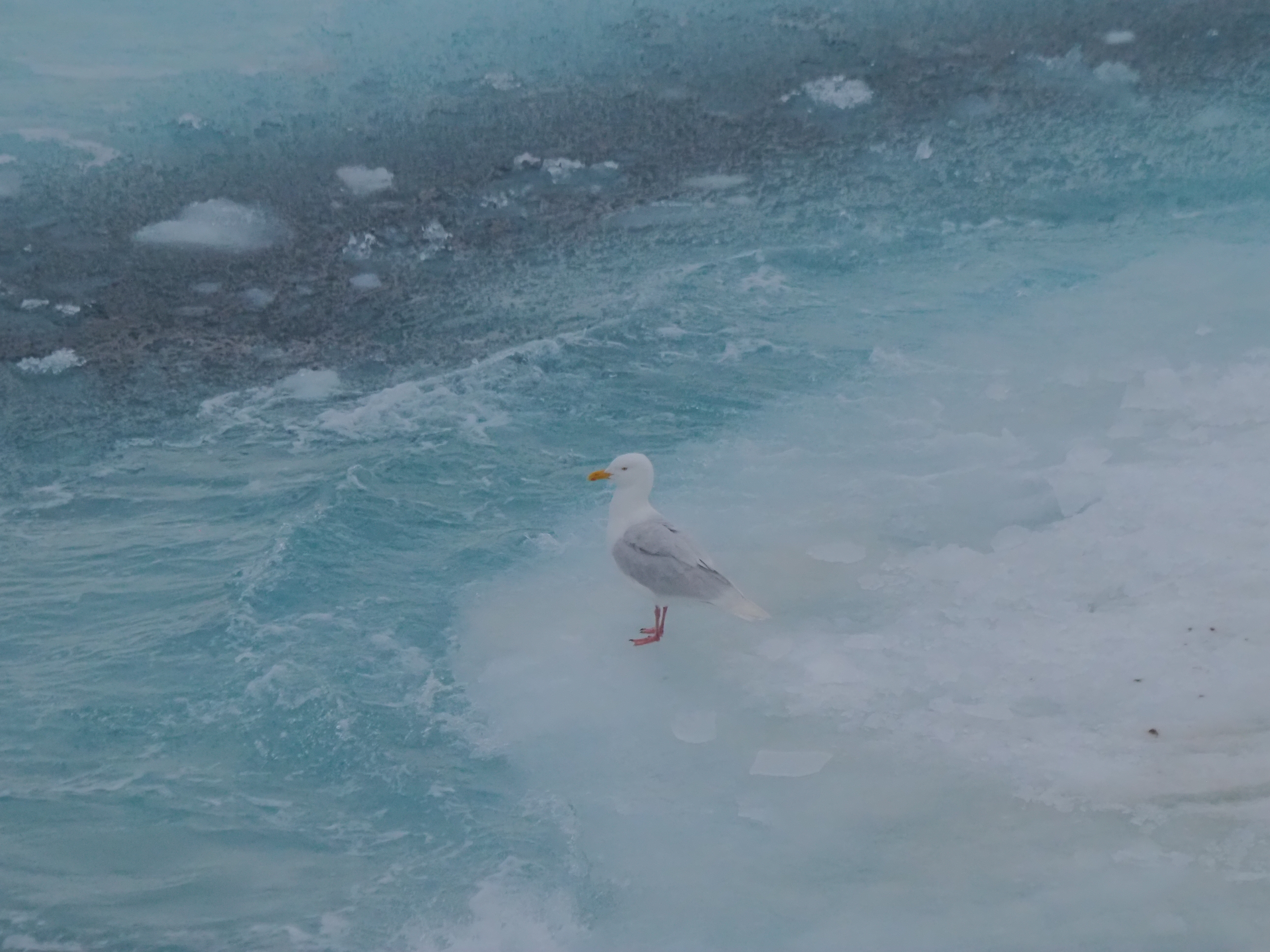 Wo Eisbären sind, ist auch die Eismöve nicht weit. Diese finden nach dem Bären am Tisch noch reichlich zu Fressen und machen den Platz sauber.