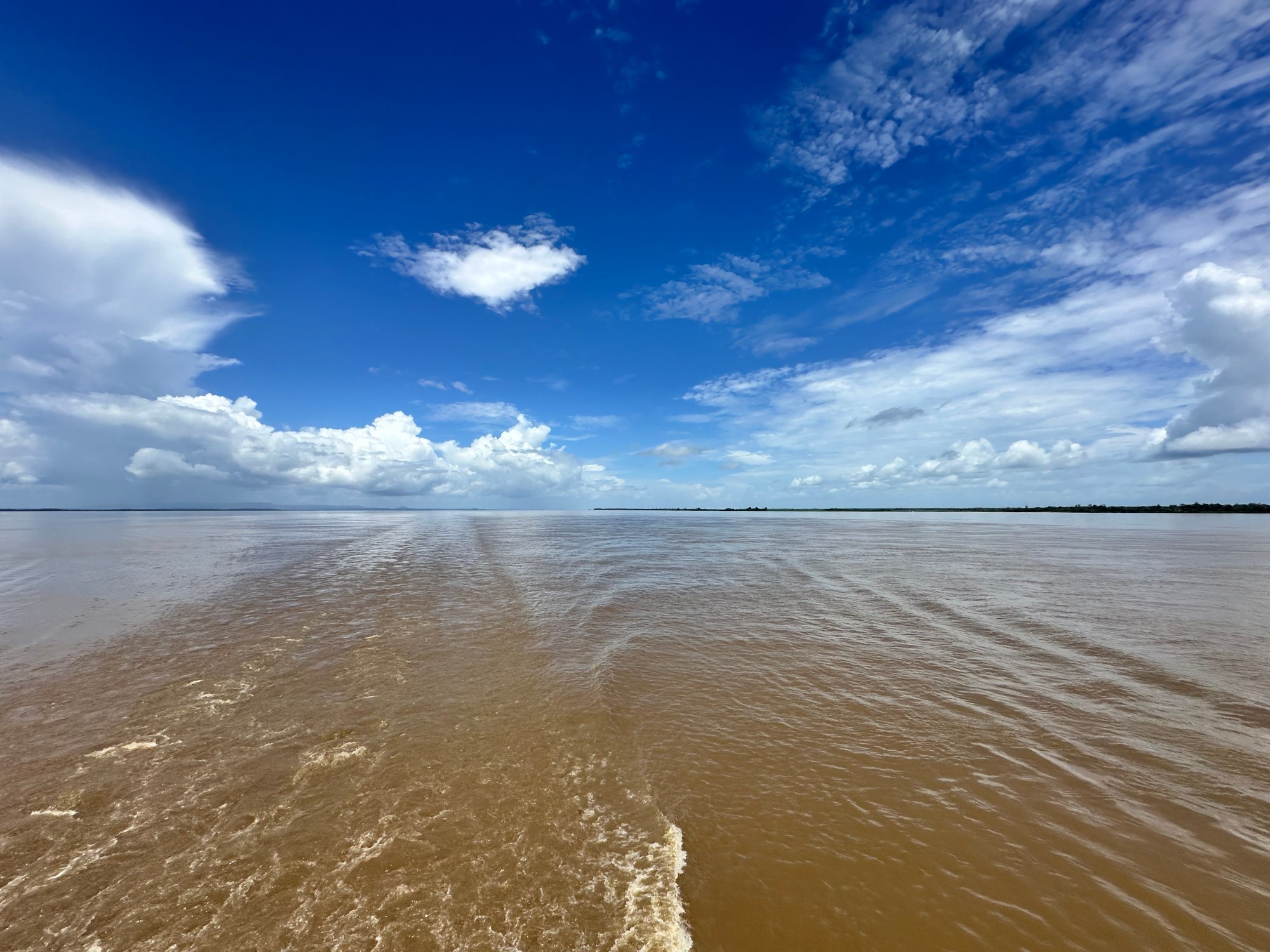 Dass der Amazonas der grösste Fluss der Erde ist, weiss wohl jedeR. Die Gelehrten streiten sich manchmal, ob der Nil oder der Amazonas der längste Fluss sei. Das mag damit zusammenhängen, dass letzterer seinen Namen erst ab dem Zusammenfluss zweier Quellflüsse trägt (wie die Weser oder die Donau). Er ist aber mit riesigem Abstand der Wasserreichste Fluss der Erde. Im Mündungsbereich fliessen mehr als 200’000m3 Wasser pro Sekunde in den Atlantik, das ist mehr als die 7 folgenden der grössten Flüsse auf dieser Erde zusammen bringen!