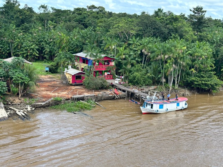 Nach der Abfahrt in der Nähe von Belem, das allerdings gar nicht wirklich am Amazonas liegt, fahren wir auf Wasserwegen, die die beiden Flüsse verbinden. Es ist kein Kanal, der von Menschen gebaut wurde, vielmehr ist es ein Mündungsarm des Amazonas, der diesen hier mit seinem Nachbarn verbindet.