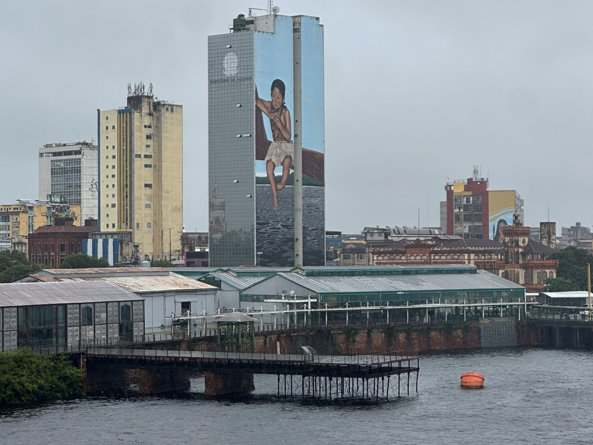 Auch der Rio Negro ist ein riesiger Fluss und hier überspannt seit 2011 eine Brücke auf fast 3.5km breite den Fluss in über 70m Höhe über dem Wasser. So gibt es auch auf der anderen Seite des Wassers Städte deren Bewohner dank der Verkehrsanbindung auch Arbeit in der Stadt finden können. Es ist ein Kulturschock gegenüber den Orten, die wir in den letzten Tagen gesehen haben. Die Stadt erlebte einen Boom zu Anfang des 20.Jh mit dem Kautschuk-Boom und wurde sehr wohlhabend, galt wohl als eine der reichsten Städte in der Welt. Mit dessen Ende aber verkümmerte sie etwas bis sie zum Zollfreigebiet wurde in den 1960er Jahren.