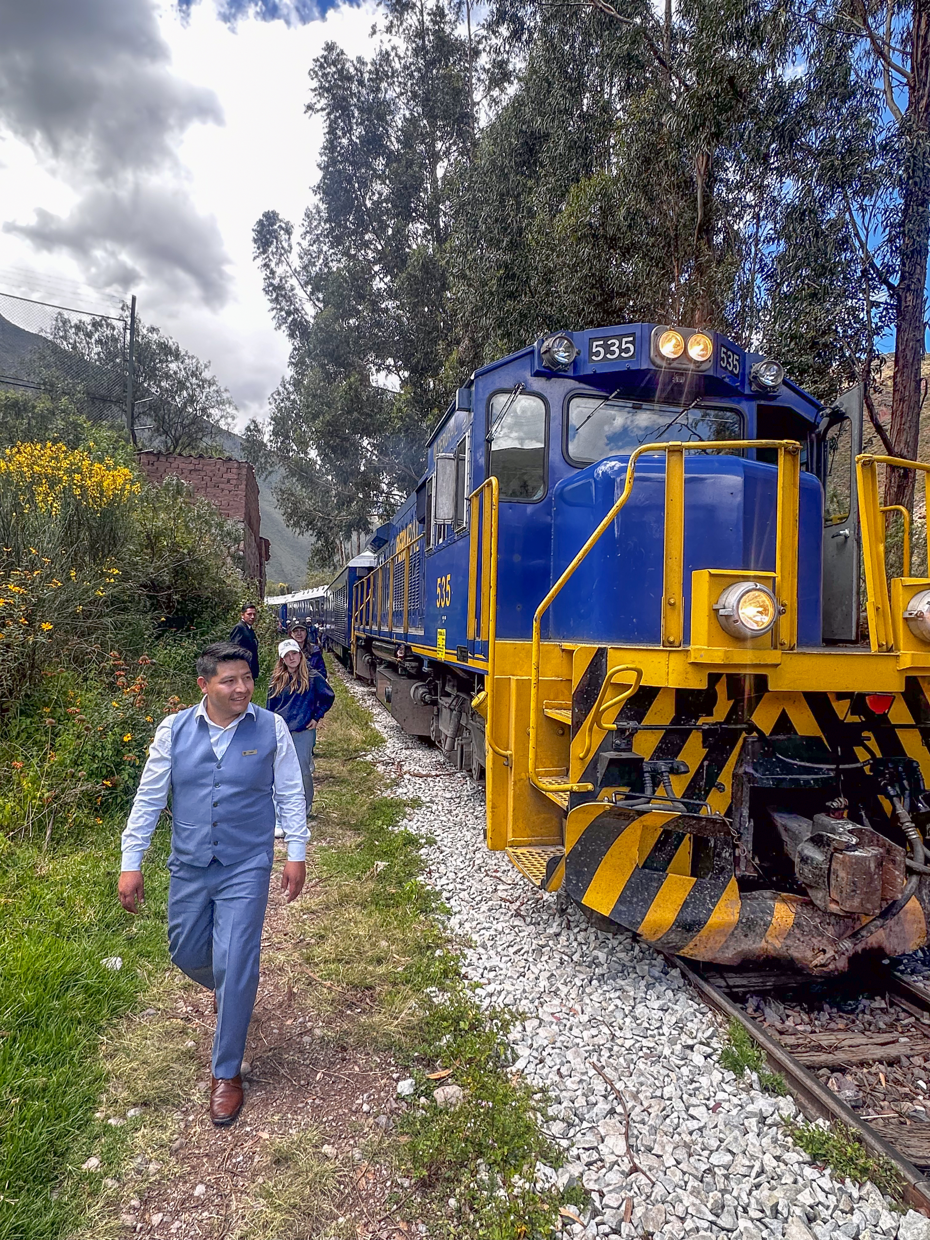 Bei der Zugstation direkt beim Hotel wird der Start zelebriert. Die Fahrgäste werden mit einem Drink begrüsst und vor der Abfahrt gibt es Musik und eine traditionelle Zeremonie der traditionellen Peruaner (Inka greift hier zu kurz).