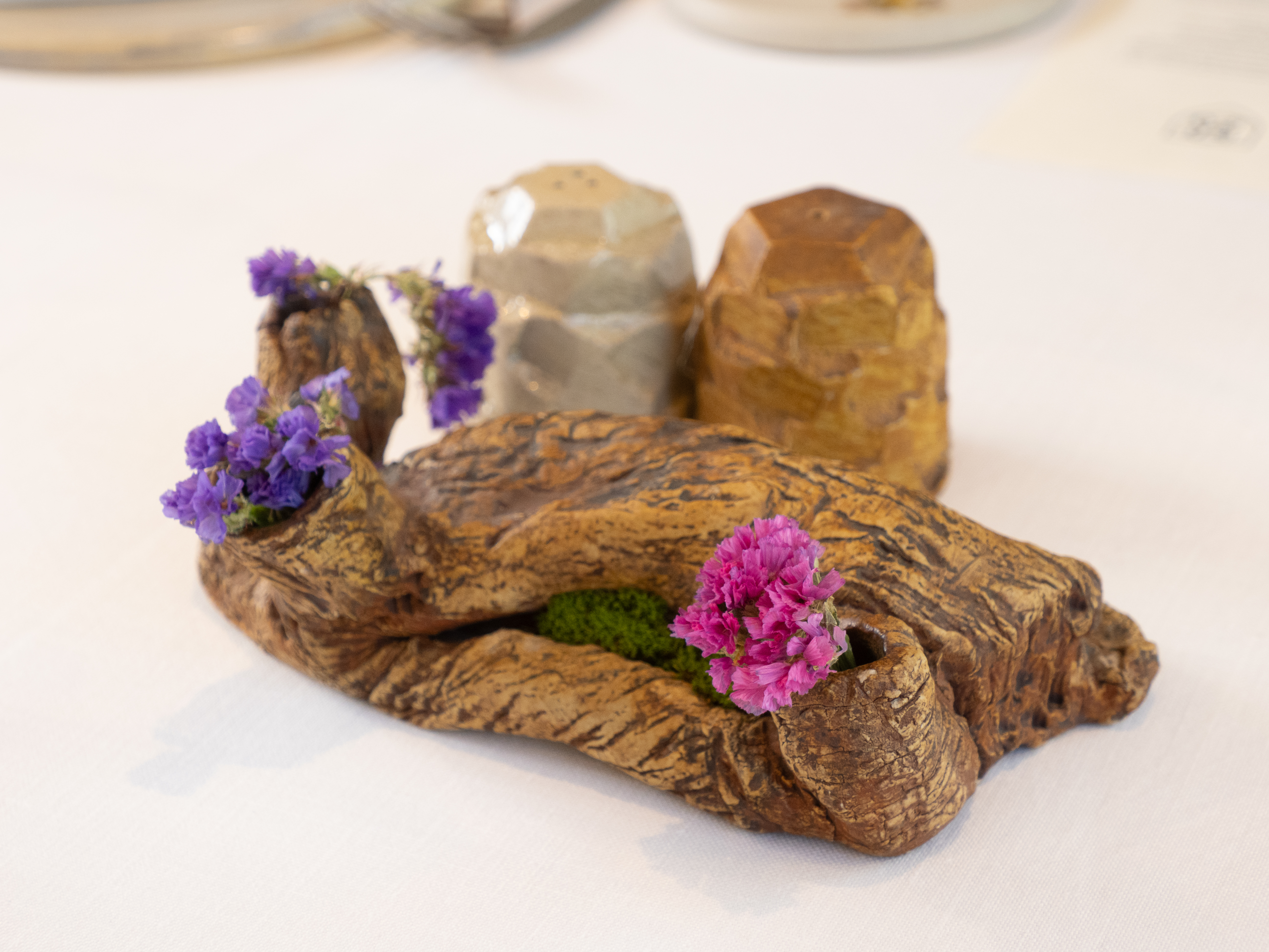 Aber uns wird auf der Fahrt das Dinner serviert, das wir jetzt im ruckelnden Zug einnehmen müssen. Dieses besteht auch wieder aus 3 Gängen, mit einer Auswahl bei der Hauptspeise. Das Ruckeln ist auch für das Service-Personal herausfordernd, gerade das Einschenken von Wein ist nicht einfach.