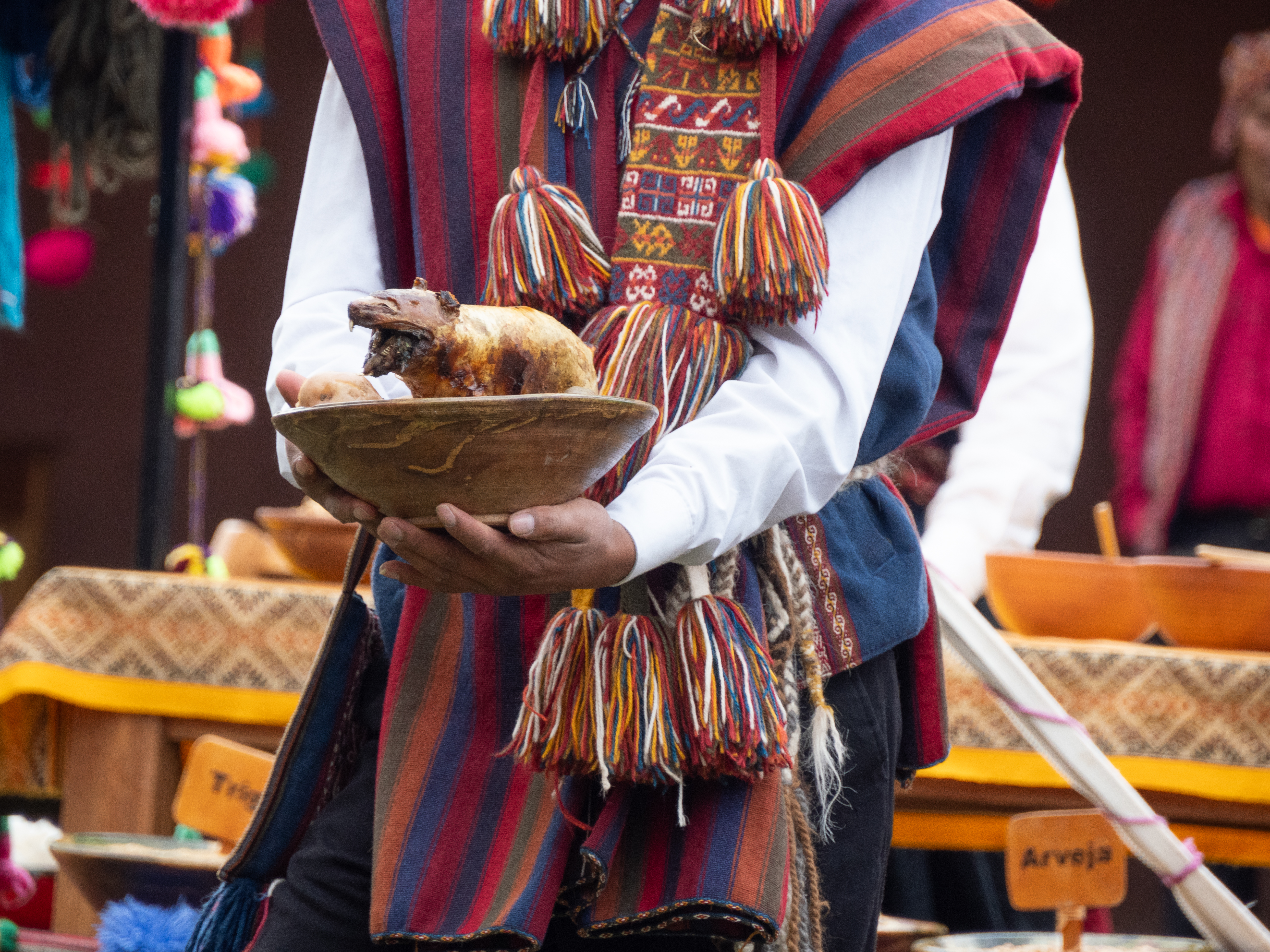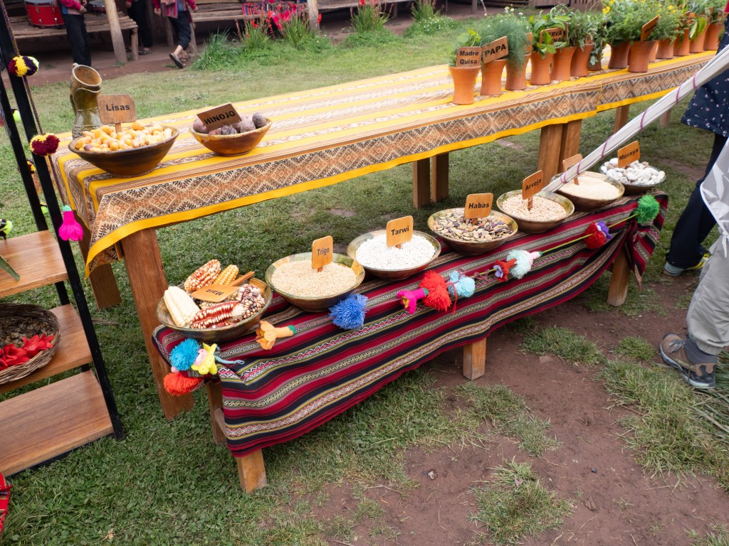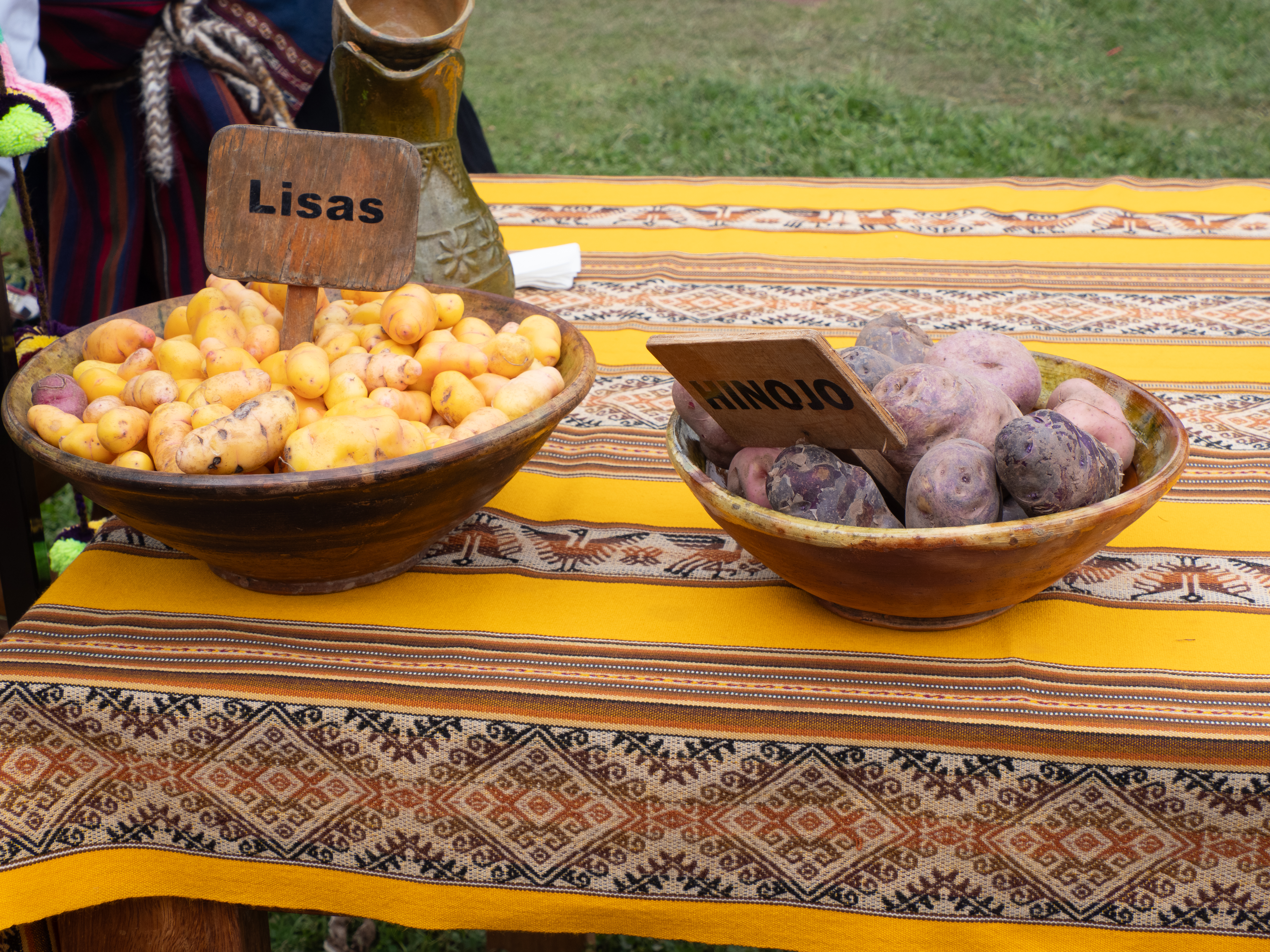 Es gibt in Perú mehere hundert Kartoffelsorten mit sehr unterschiedlicher Form und Farbe. Diese werden zu unterschiedlichen Gerichten verarbeitet. Auch Mais gibt es hunderte Sorten, hell, dunkel, gefleckt und mit kleinen oder (riesig) grossen Kernen. Auch diese werden unterschiedlich verarbeitet. Auch Quinoa und Amaranth kommt ursprünglich von hier und gehört zum Grundnahrungsangebot.