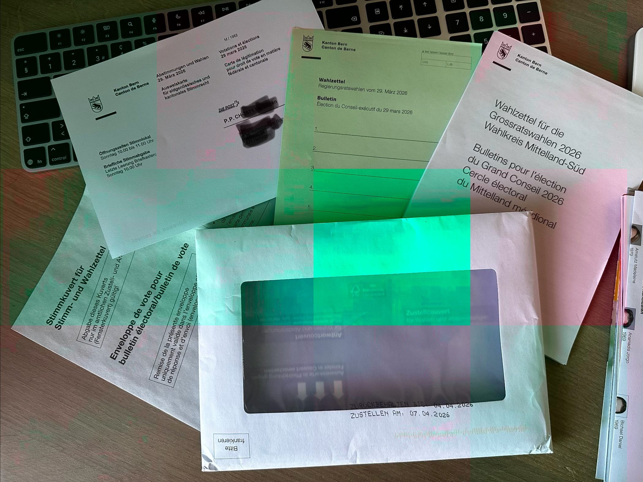 Ungefähr 3 Wochen vor dem Wahltermin haben wir jeweils einen dicken Umschlag mit folgenden Unterlagen erhalten: